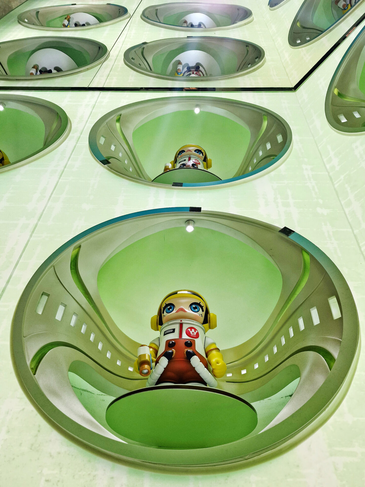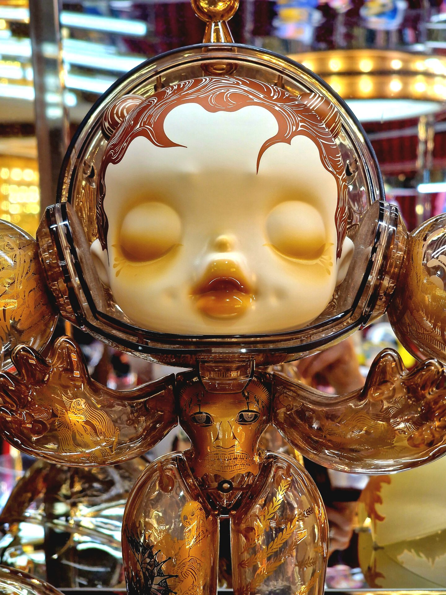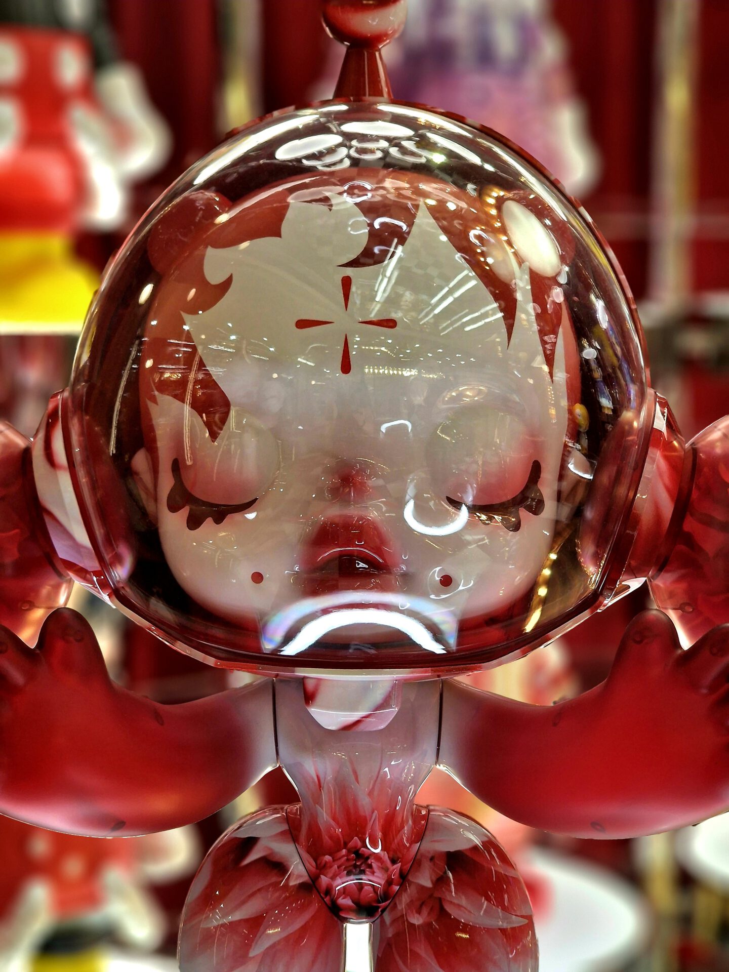 You drop a coin into the machine and wait. A short pause, a mechanical click, then a capsule falls out. Behind the glass: a crowded mix of bright, garish, nostalgic figures—some cute, some slightly unsettling—set against a worn, unglamorous backdrop. It’s tempting to call this “kitsch,” but that label doesn’t quite fit. In East Asia — where these images were taken — such colorful displays are part of everyday culture; dismissing them as kitsch would be elitist and ethnocentric. Shaped by kawaii aesthetics, they bring small moments of lightness and distraction.